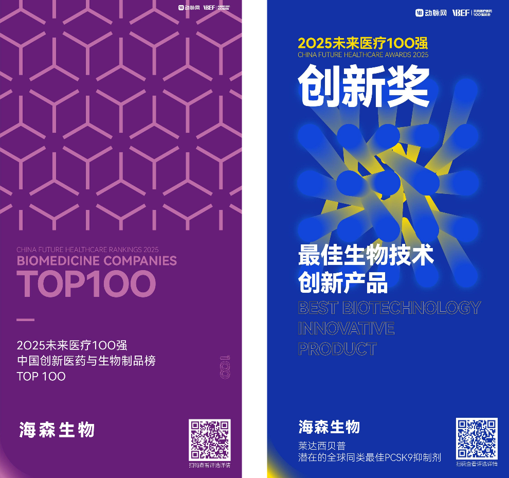 海森生物憑借其杰出的商業(yè)化優(yōu)勢(shì)、創(chuàng)新研發(fā)的卓越表現(xiàn)和行業(yè)持續(xù)貢獻(xiàn),榮登“中國(guó)創(chuàng)新醫(yī)藥與生物制品榜TOP100”,其創(chuàng)新在研產(chǎn)品萊達(dá)西貝普(Lerodalcibep,以下簡(jiǎn)稱HST101)一舉斬獲“2025VBEF創(chuàng)新產(chǎn)品獎(jiǎng)·最佳生物技術(shù)獎(jiǎng)”。